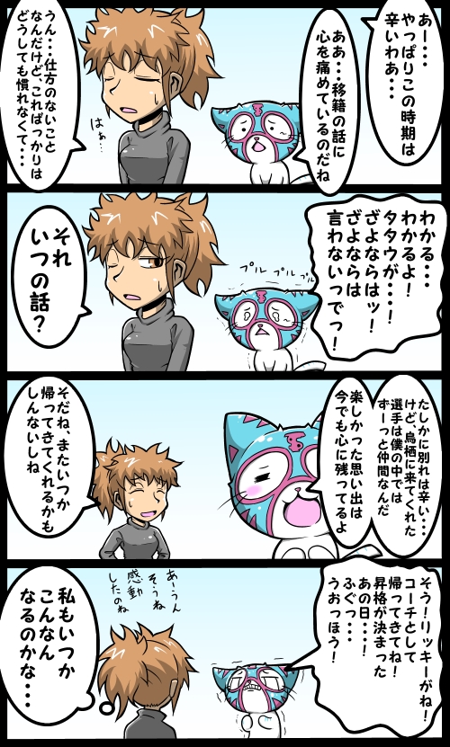 ねこんとすとコンビの女の子(名前はまだない)は、今は九州J-park( http://kyushu-j.jp/ )で連載中の「ぽたろのスタジアム日記」でも見れますので、良かったらご覧下さい(宣伝)。